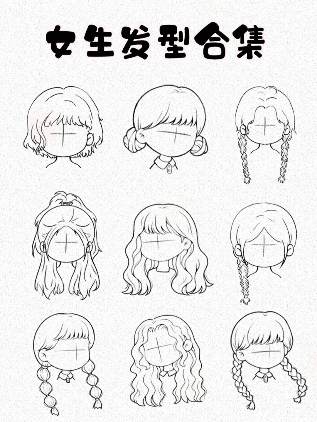 来一期q版女生发型合集 没有头发画的看这里 90可以临摹哦 标注出处