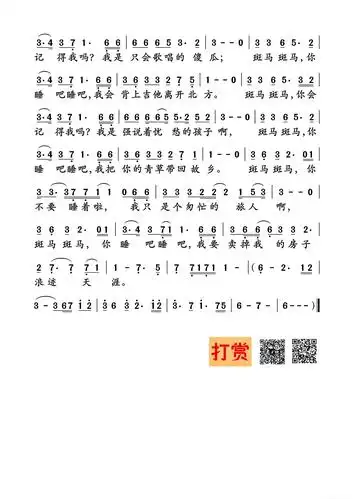 斑马斑马简谱 - 曲谱歌词网