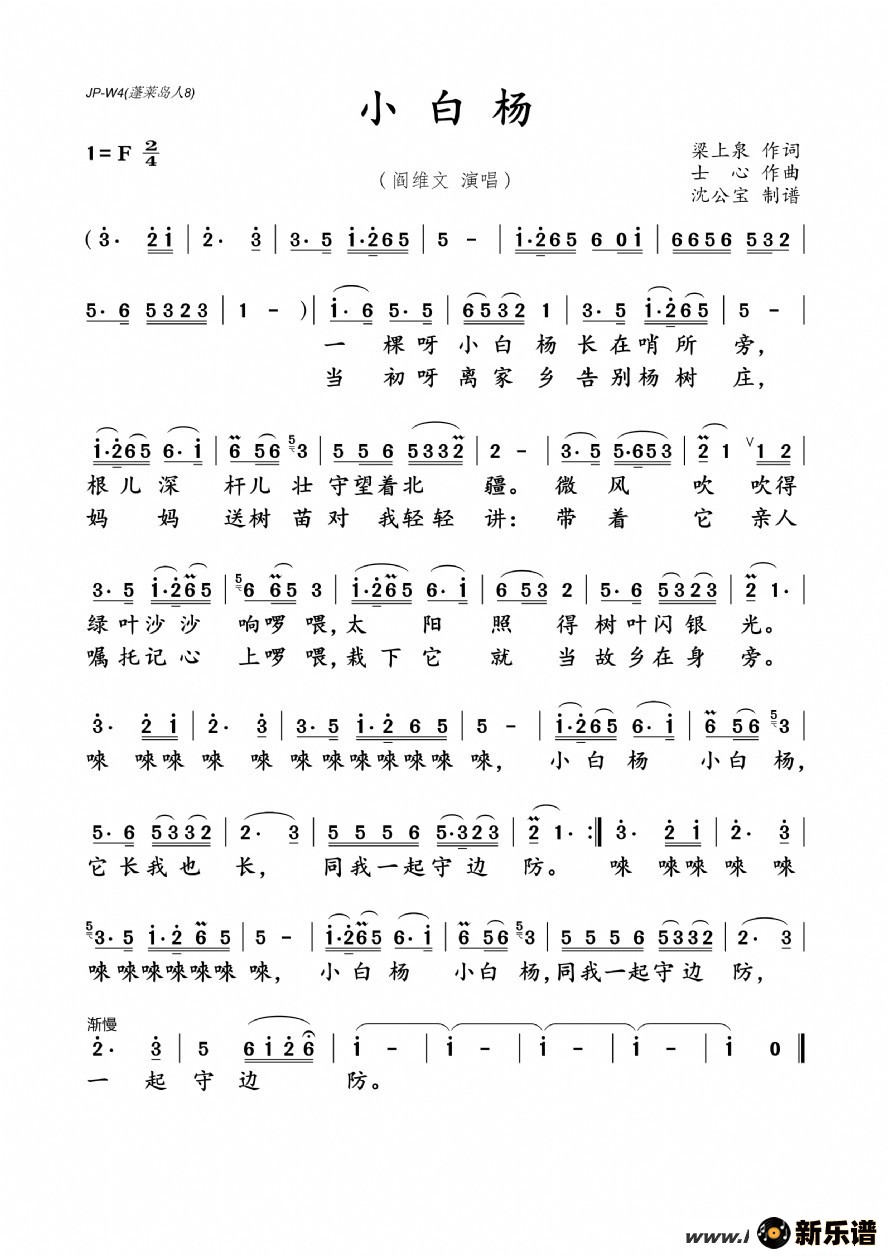 小白杨简谱歌谱_小白杨简谱_简谱大全_中国曲谱网