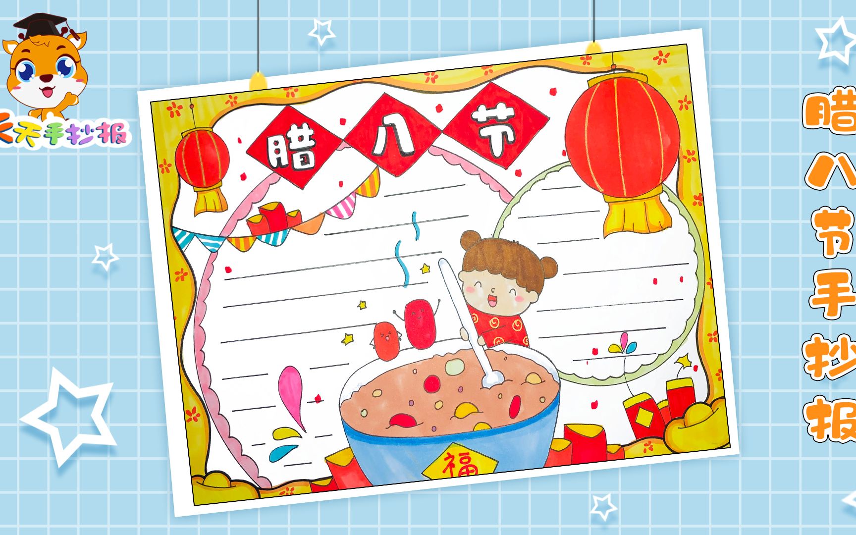 【天天手抄报】超级漂亮的腊八手抄报教程,2分钟画一幅腊八节手抄报
