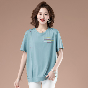 4050妈妈小衫夏装纯棉短袖t恤女中老年女装夏天纯棉棉宽松体恤衫