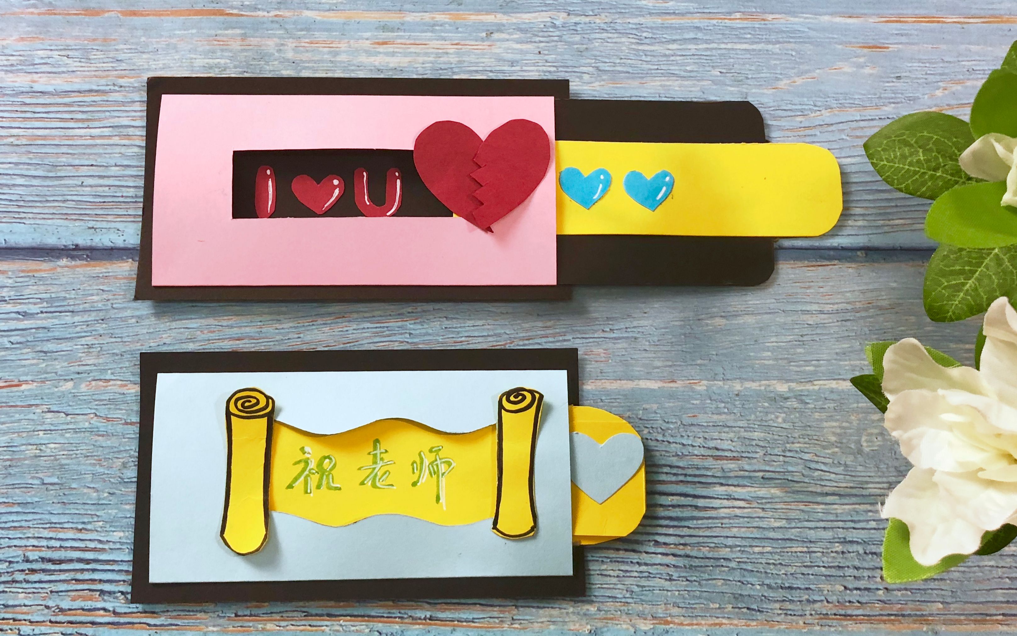 九耳猫的美术课│手账小机关抽拉卡,可以表白也可以当做贺卡~_哔哩