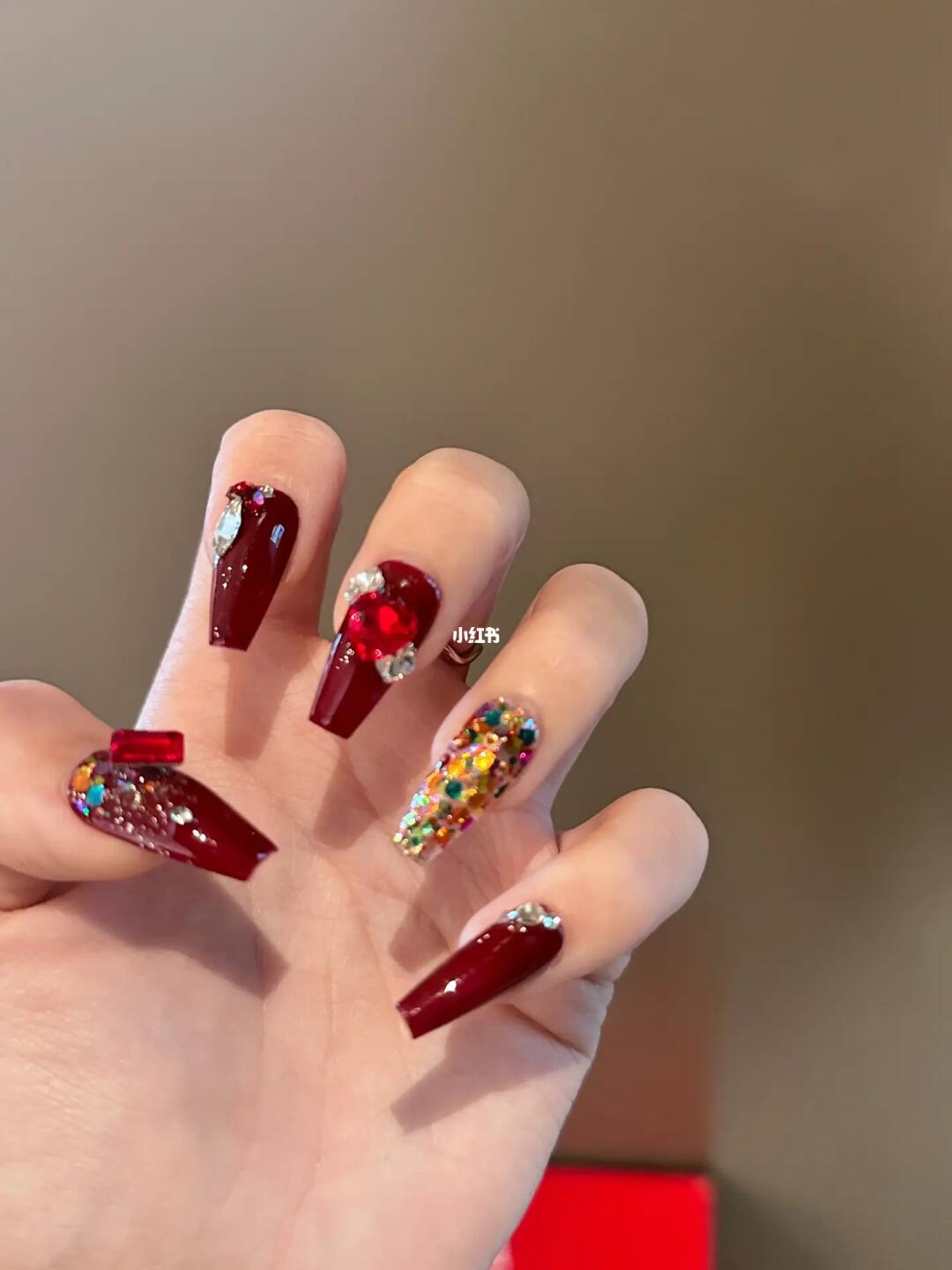 新年美甲95复古酒红法式腮红显白美甲 酒红色巨巨巨巨巨显白!