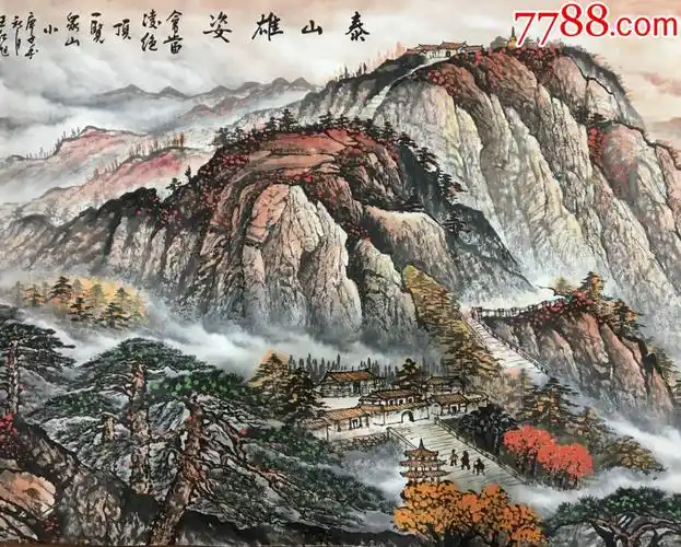 【精品】中美协会员,著名画家王红旭作品:泰山雄姿图