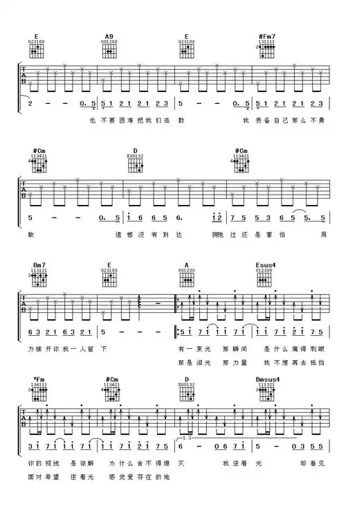 逆光简谱 孙燕姿逆光,再听不只是勇气5