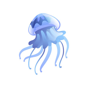 水母, 美丽的浅蓝色海洋水下生物生物向量插图照片