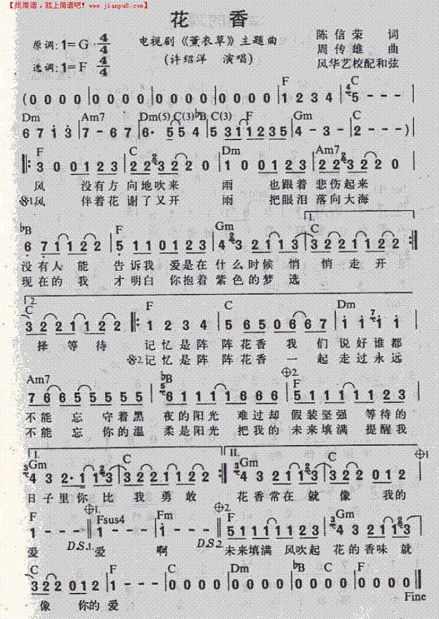 花香_简谱_歌谱_曲谱_吉他谱_五线谱