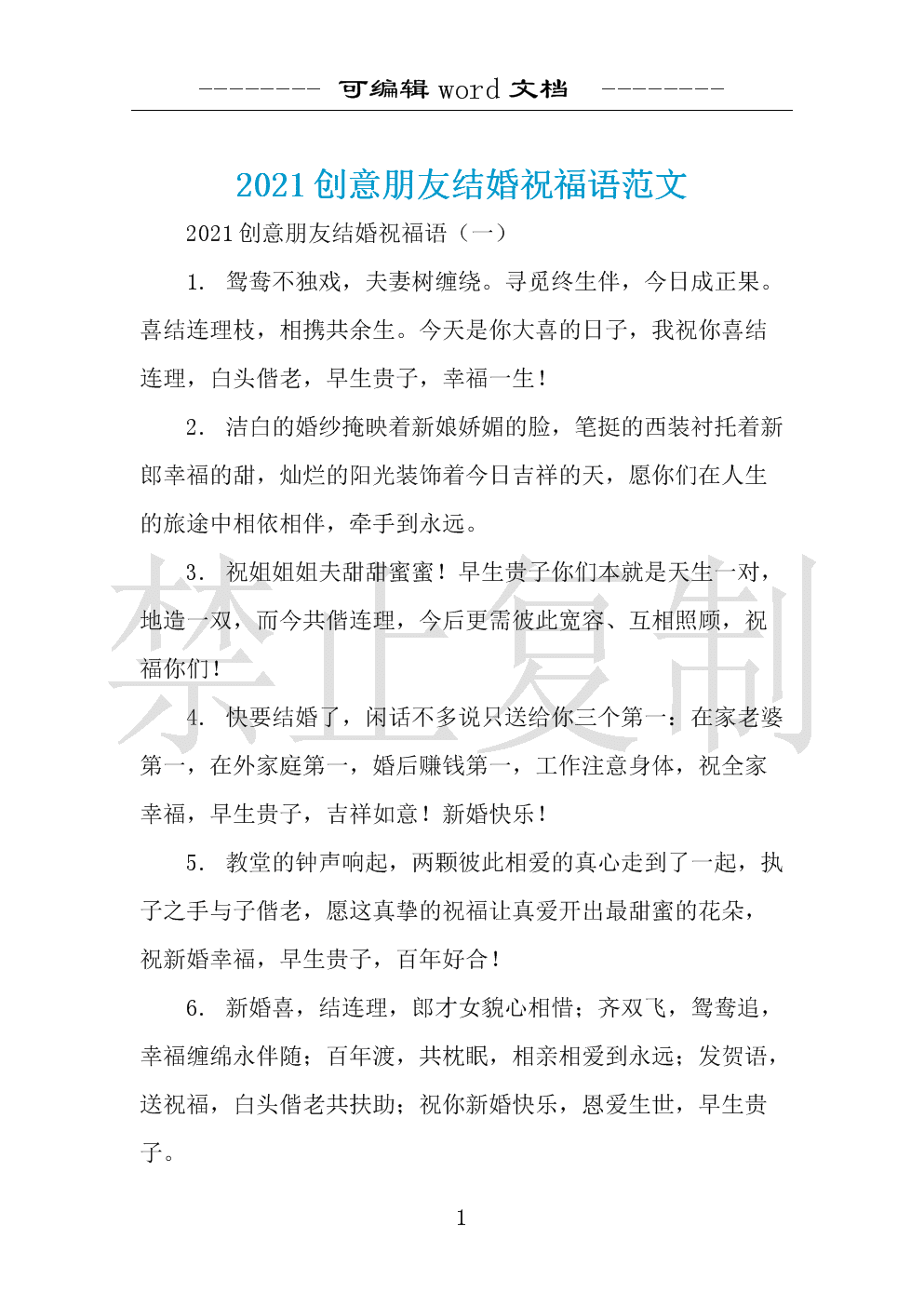 2021创意朋友结婚祝福语范文 .docx 10页
