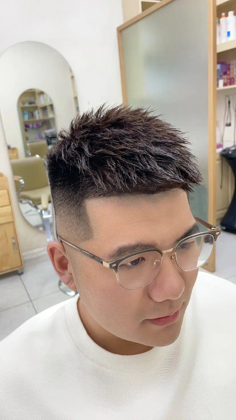 前刺发型除了会把周边头发铲短之外,头顶头发的长度也比男士寸头稍长