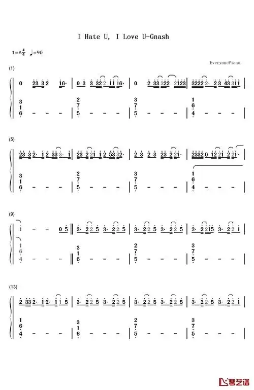 i hate u i love u钢琴简谱-数字双手-gnash1