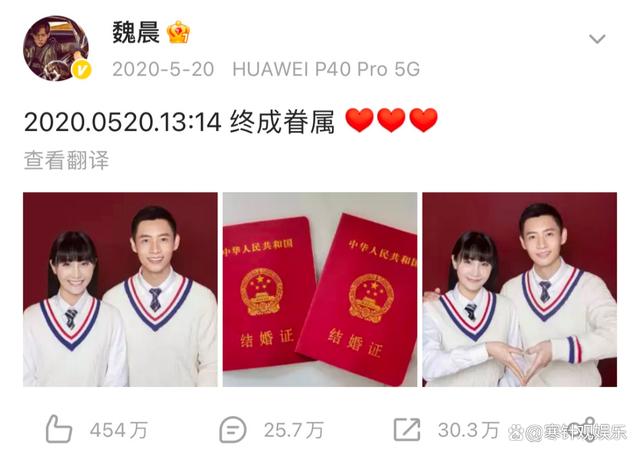 魏晨承认将于冬至举办婚礼与女友结婚照曝光郎才女貌十分般配