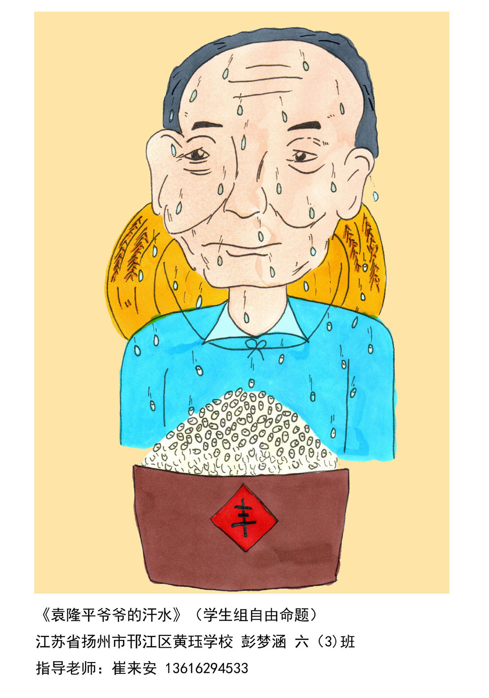 扬州这名初一女生漫画获全国大奖作品为袁隆平爷爷的汗水