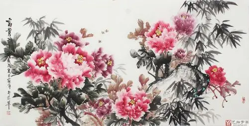实力派画家李东献四尺横幅牡丹画《花开富贵》_写意花鸟画_花鸟画