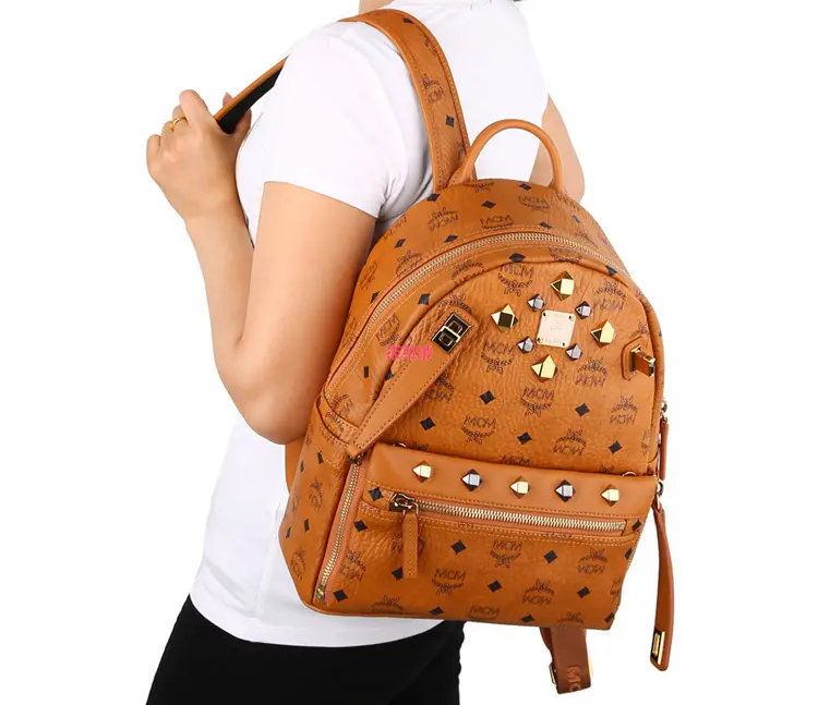 mcm(mcm) 棕色皮质铆钉装饰mini双肩包