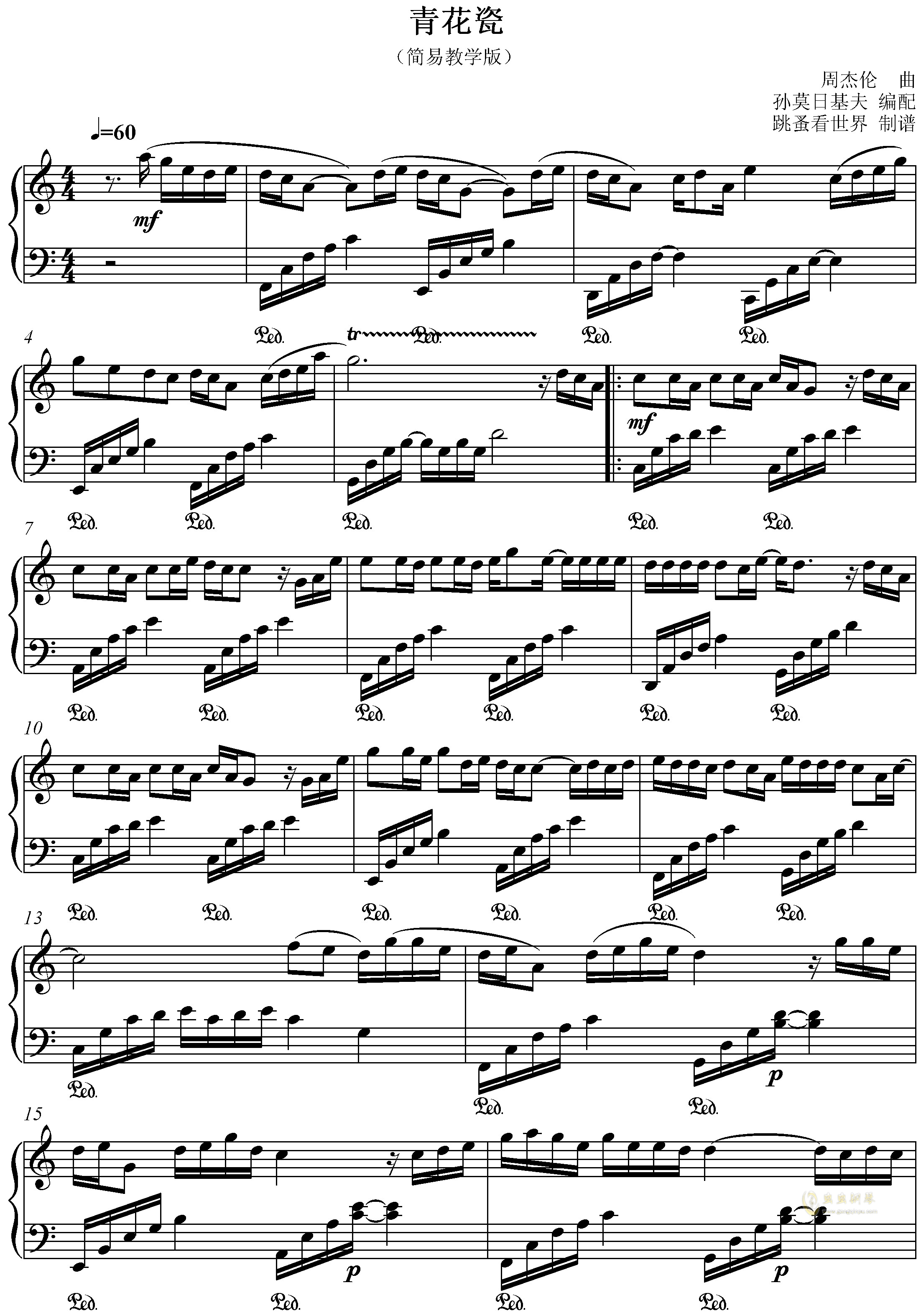 青花瓷-简单版-周杰伦-c调 -流行钢琴五线谱