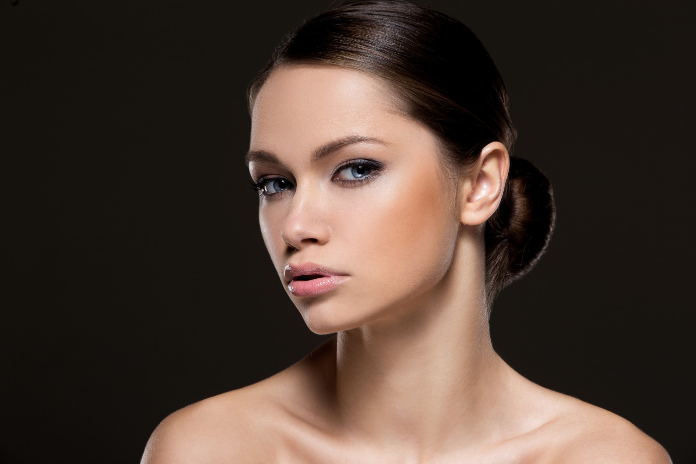 面对镜头微笑的外国模特护肤品广告高清摄影图片