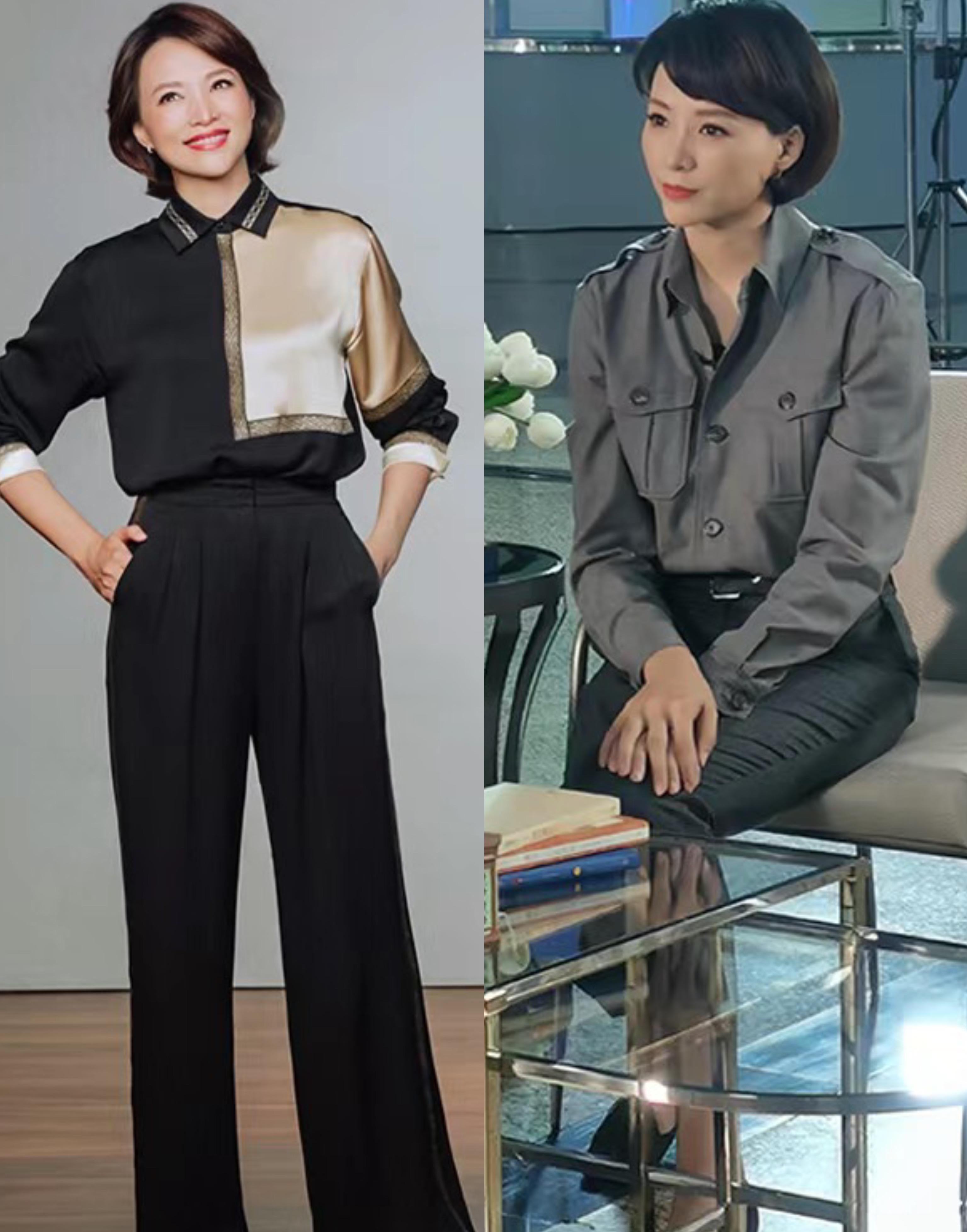 为了让整体衬衫穿搭更显随和,董卿将衬衫的袖口挽起,这就让她显得更加