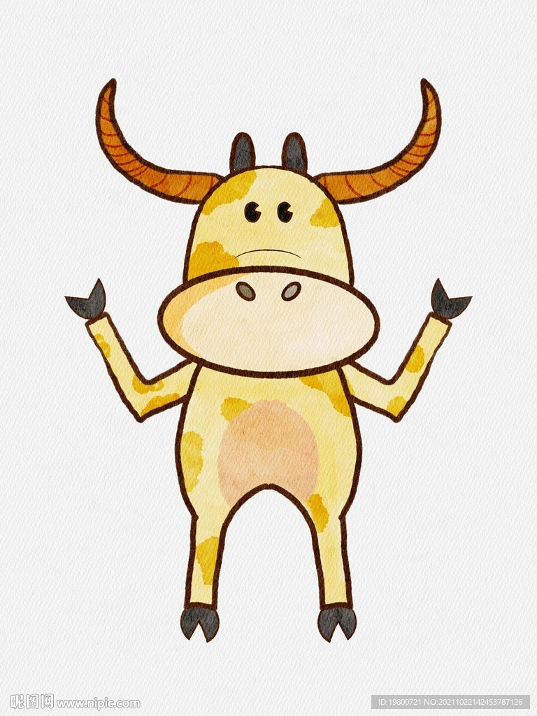 卡通手绘水彩可爱动物牛图片