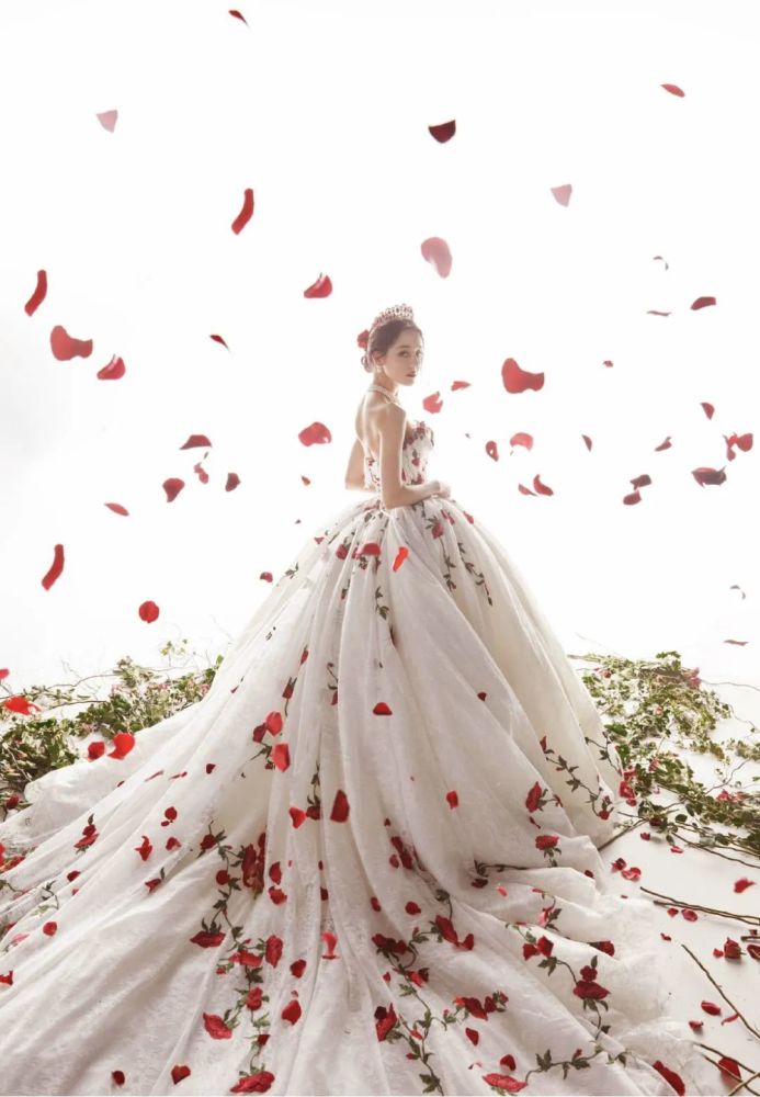 迪丽热巴的庄园玫瑰婚纱惊艳众生高级定制到底有多美