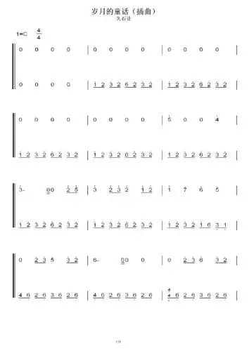 久石让 岁月的童话 初学者c调简易版 钢琴双手简谱 钢琴简谱 钢琴谱