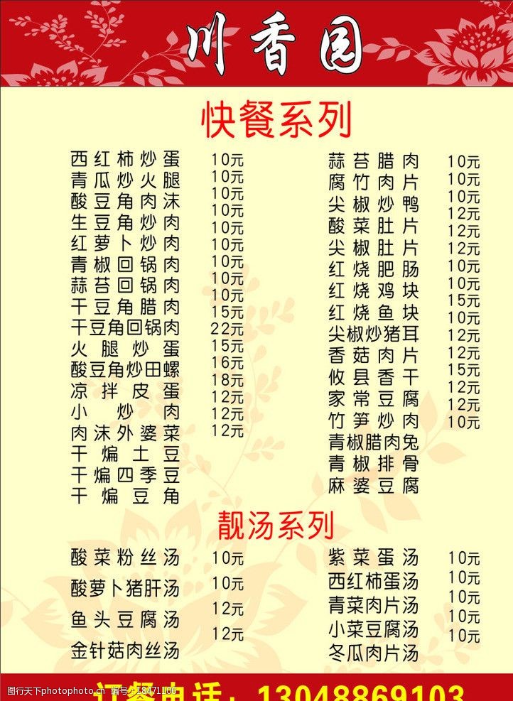 菜单快餐菜谱图片