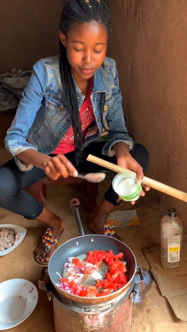 非洲黑人美女做饭,真是一点油都不浪费