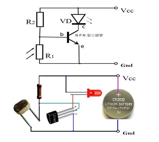 为什么光控开关不怎么好用啊 按照图片做的,白天led还是有亮度,只是不