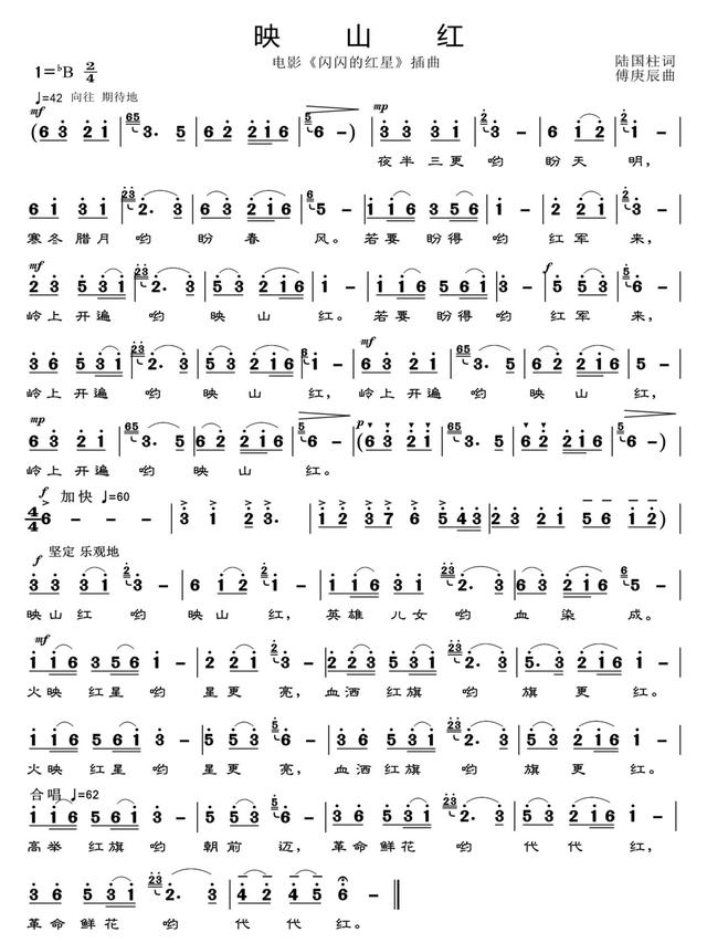 映山红(1974年影片《闪闪的红星》插曲)简谱-通俗曲谱-爱曲谱网