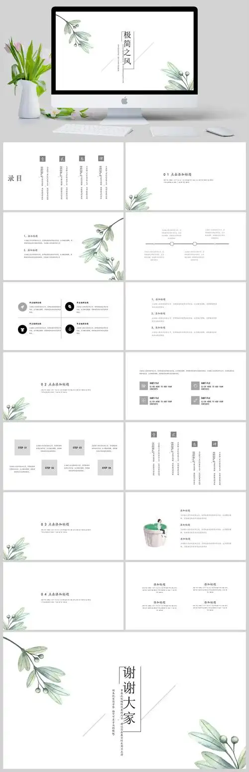 小清新极简简约创意风通用ppt模板