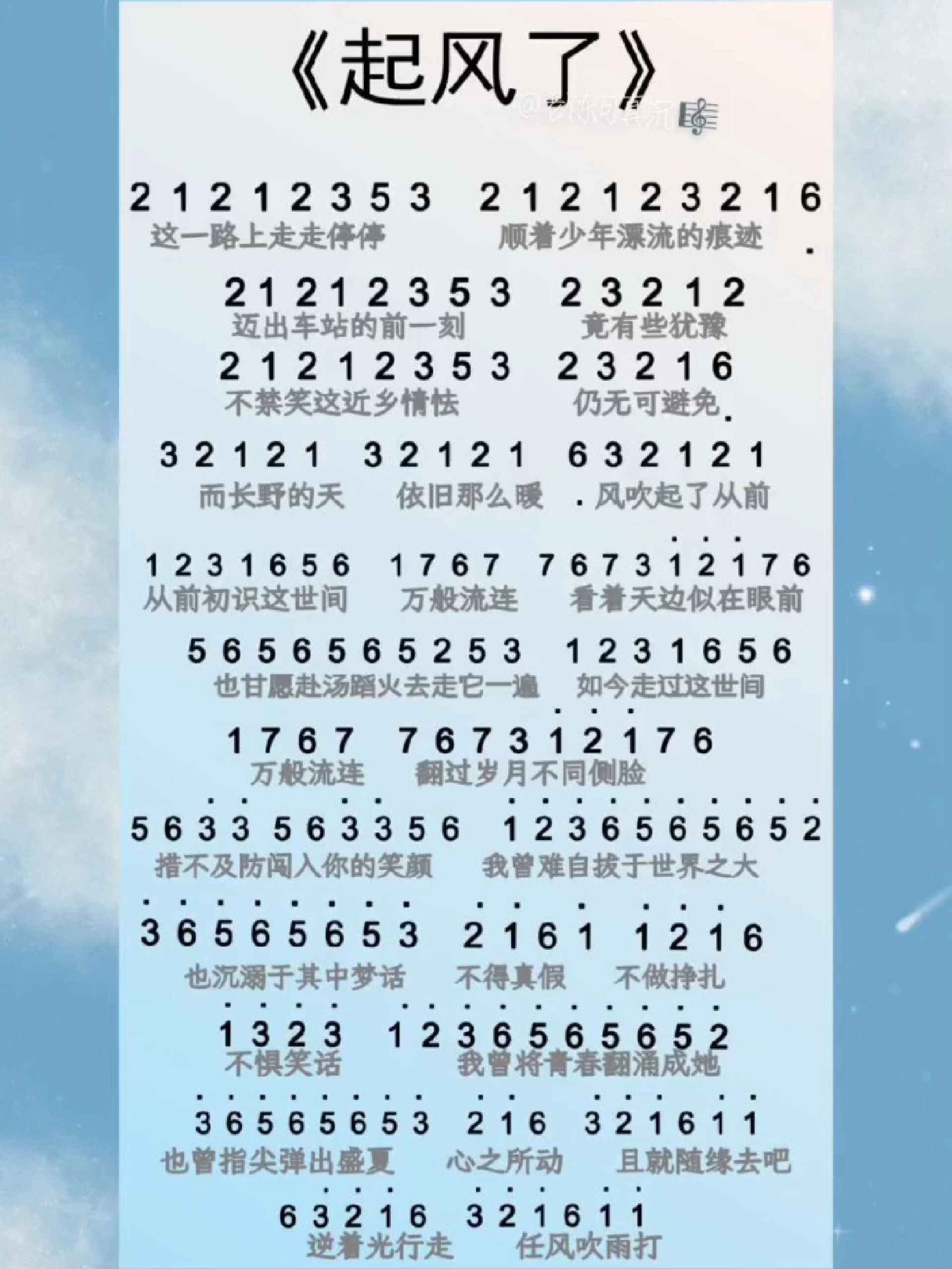 周深《起风了》简谱.愿天下学子乘风而起,踏浪而去! #周深