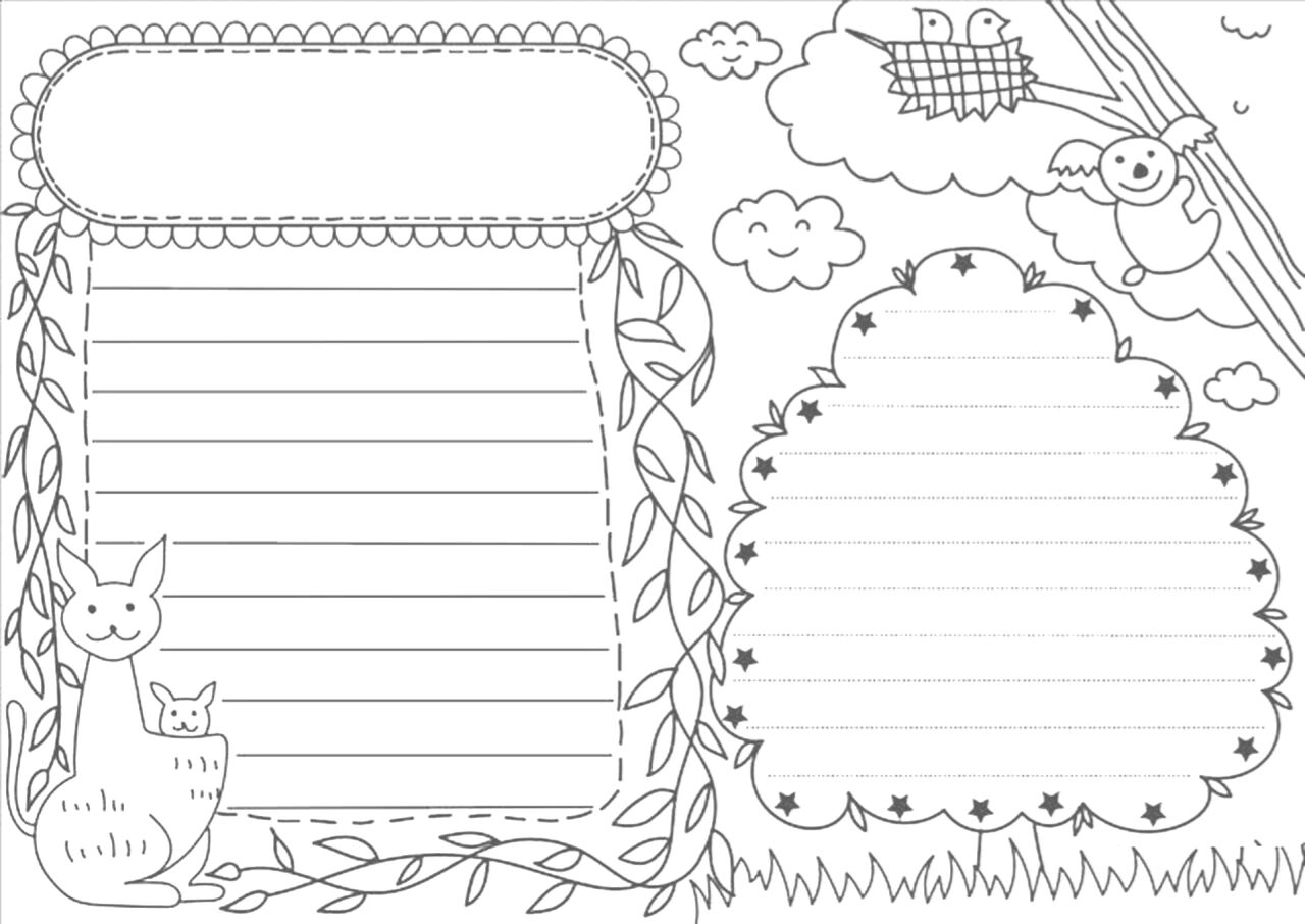 通用手抄报模板(黑白可打印)描边涂色