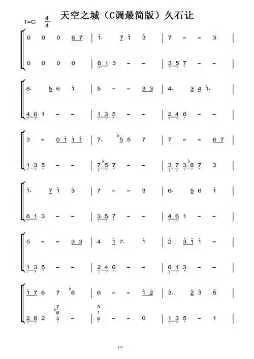 天空之城c调最简版久石让原版钢琴双手简谱钢琴谱