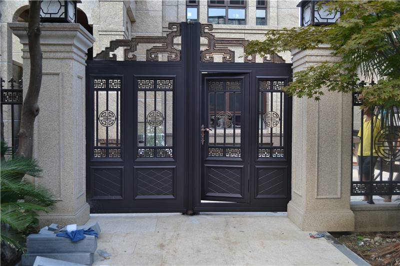 铝合金庭院门百叶大门现代别墅花园单双开门乡村入户外铝艺院子门 铝