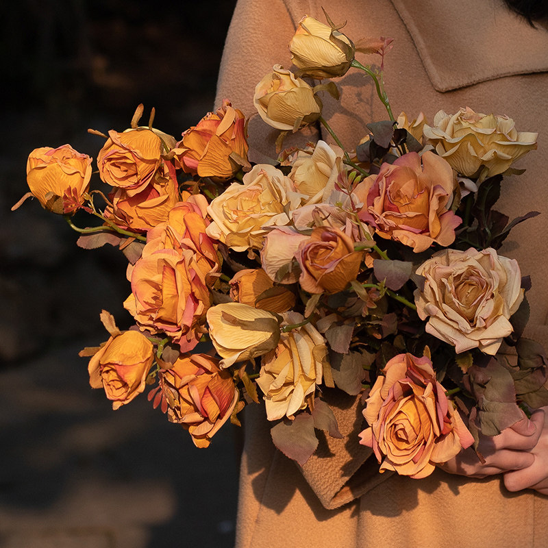 ins复古秋色仿真花假花单支玫瑰花家居装饰花假花仿真玫瑰