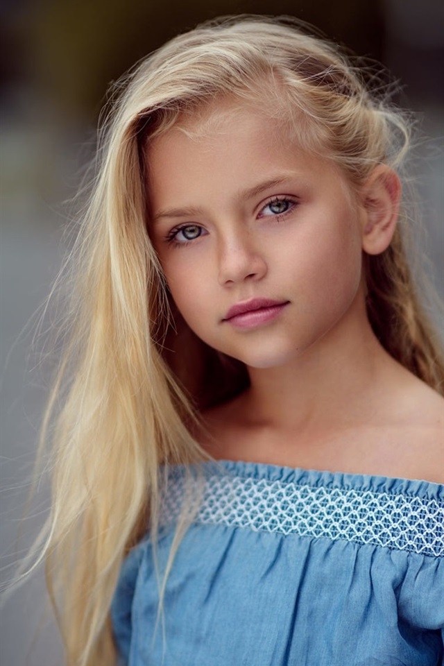 可爱的小女孩,金发碧眼,蓝色的裙子 iphone 壁纸