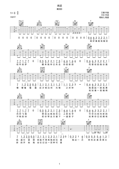 戴羽彤来迟吉他谱