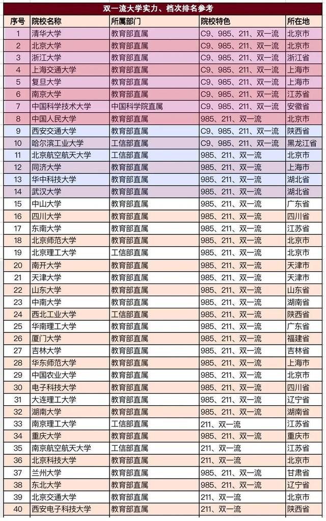 我国最新的42所双一流大学排名能够上985的考生可借鉴参考