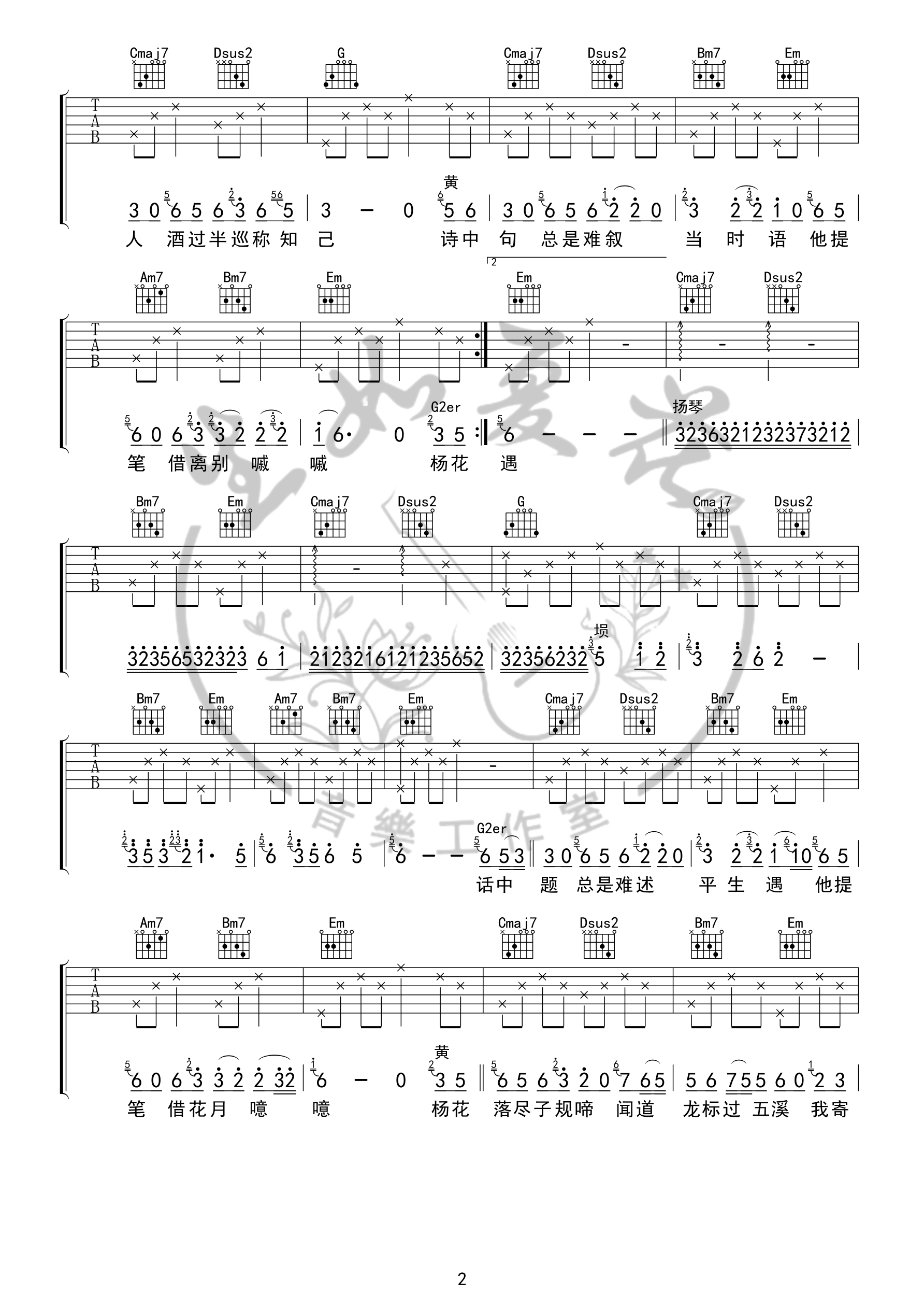 杨花落尽子规啼 简易版_吉他谱_17吉他网