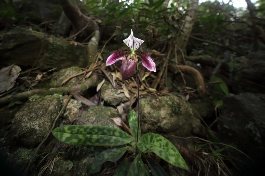 潮汕地区最珍稀野生兰科植物之一紫纹兜兰