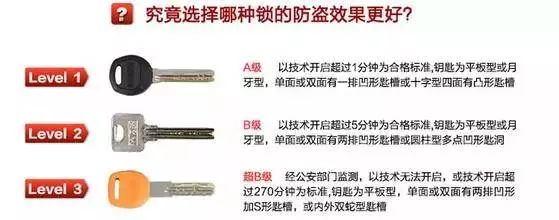 从钥匙形状区分锁具防盗性能高低为abc级,看家里的锁芯安全吗?
