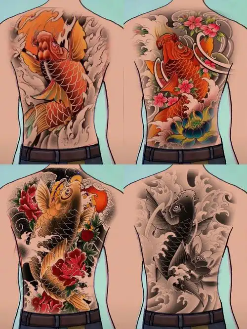 满背鲤鱼一次完成纹身图片背部新传统老传统纹身图案