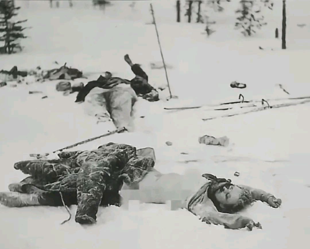 女兵阵亡尸体被扒光,暴露在雪地里.