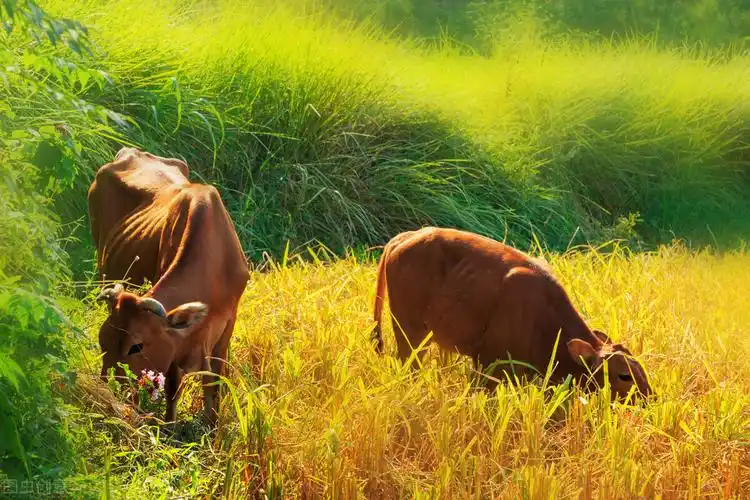 黄牛牧草田园风光图片