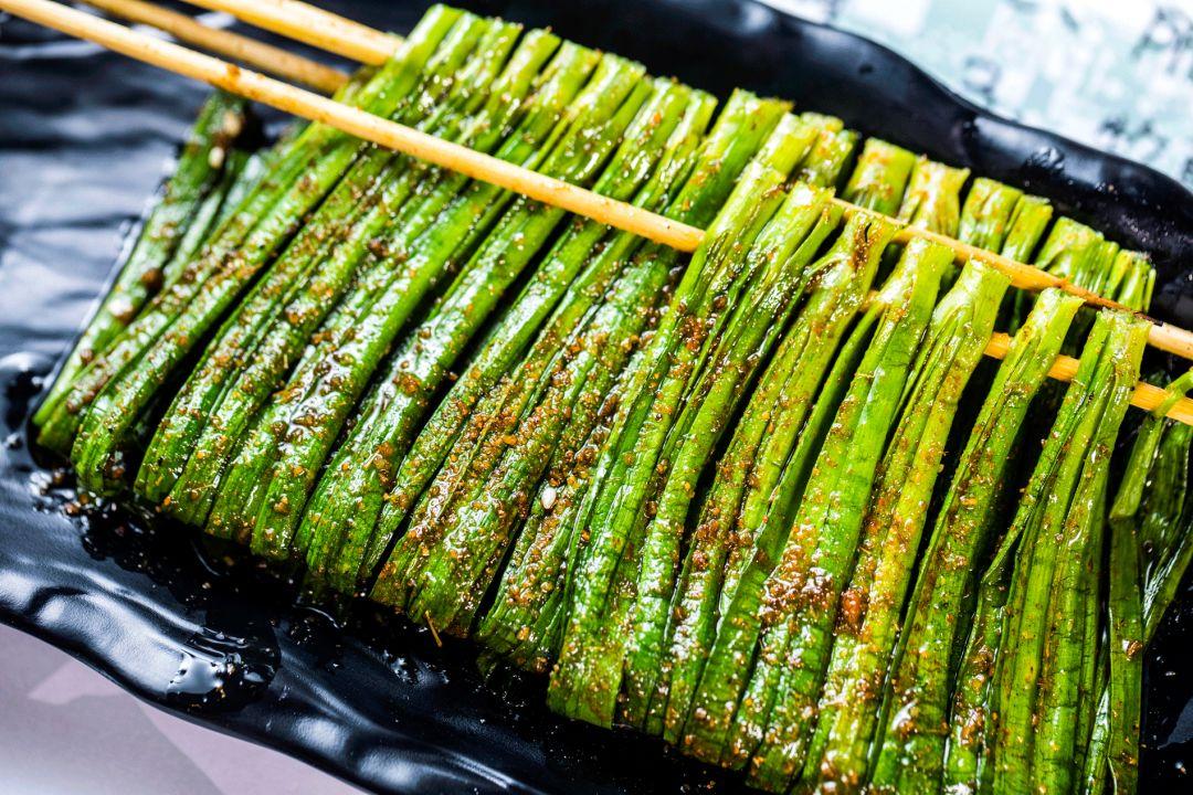 被师傅完全激发出来,韭菜鲜嫩翠绿劲儿,就连烤韭菜也是个技术活,烧烤