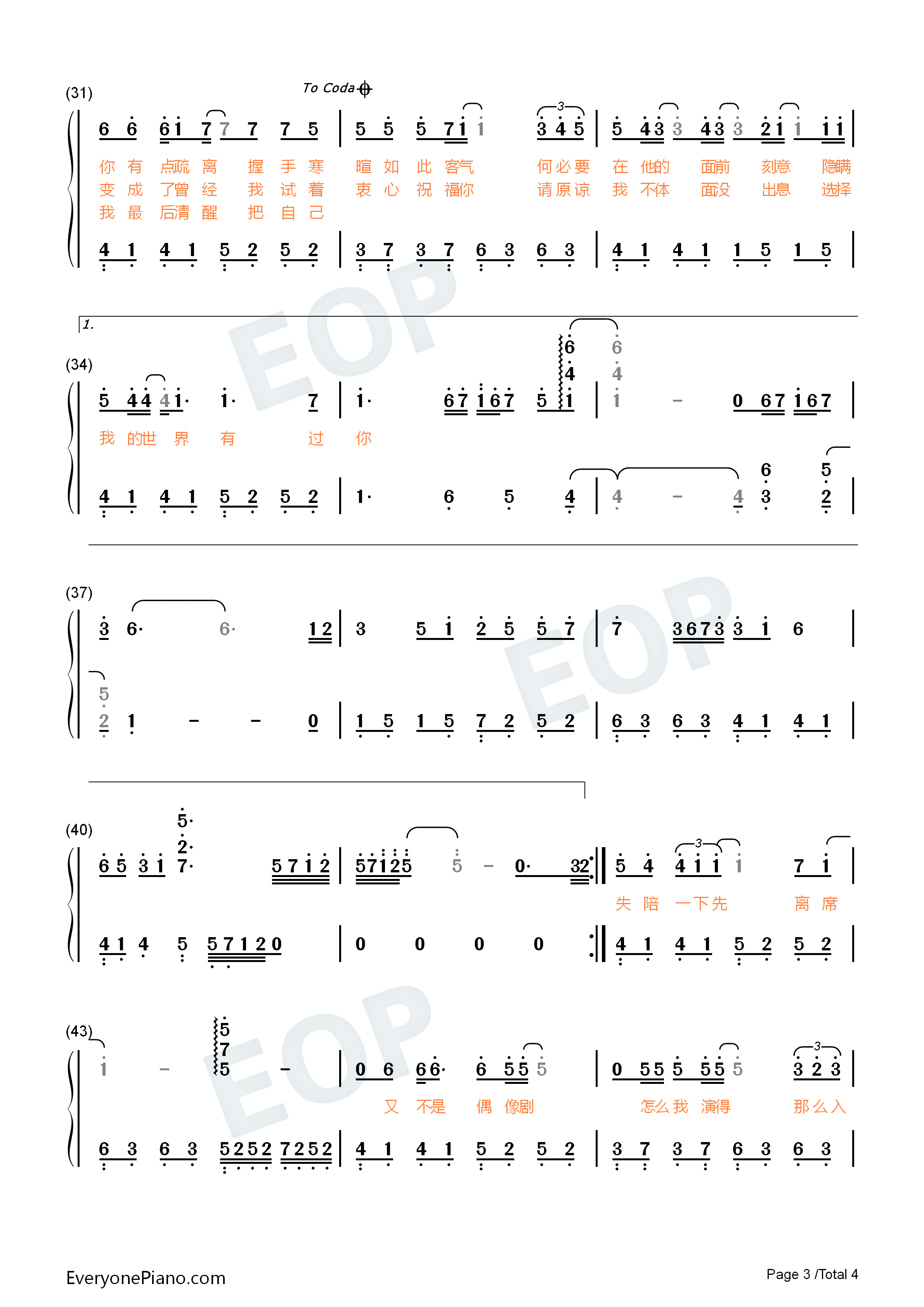 嘉宾-感谢你特别邀请来见证你的爱情双手简谱预览3-钢琴谱文件(五线谱
