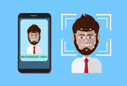 扫描面部控制保护智能手机扫描用户脸面部识别技术概念照片