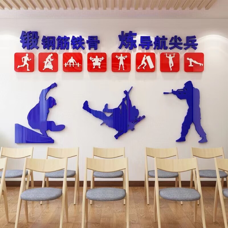 部队训练基地文化墙军人活动室健身房警营体育场地文字标语墙贴画