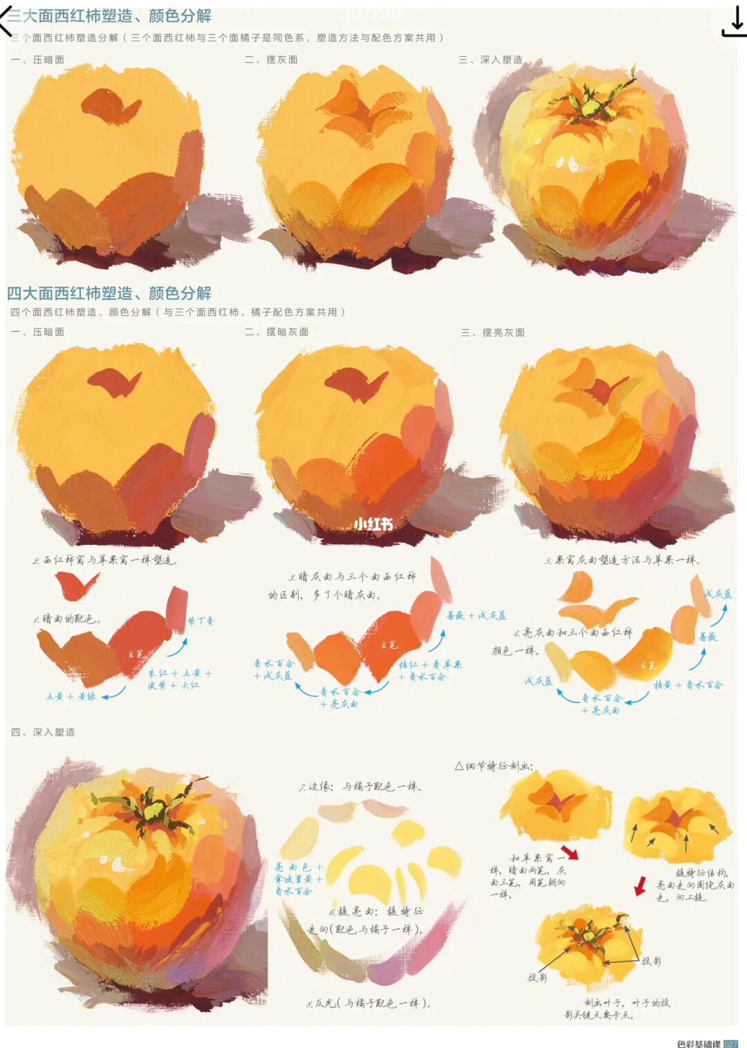 色彩石榴步骤图.#美术生 #色彩静物教学 #水粉物体塑造教程 - 抖音