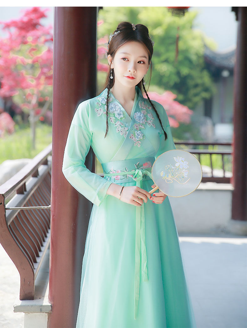 古装女中国风汉服女魏晋仙气古风仙女裙交领连体原创汉服全套 浅绿色
