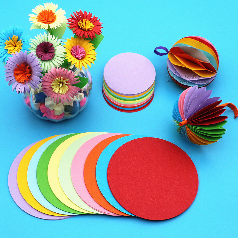 圆形折纸彩色手工纸彩纸幼儿园儿童手工diy制作材料绣球彩纸折纸专用